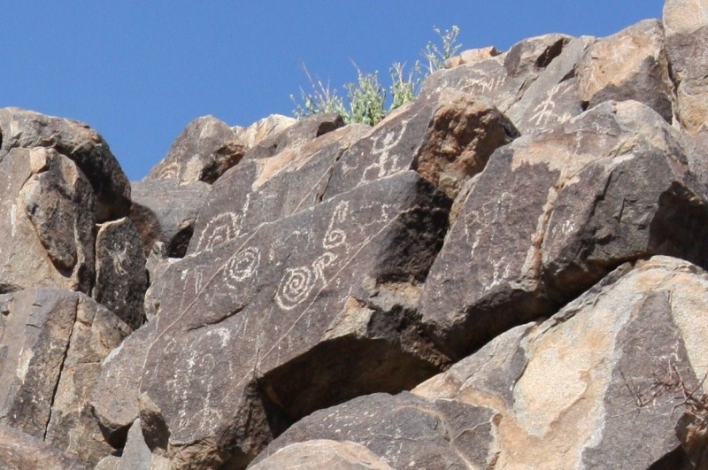 At the visitor center, they told me to take a short, easy hike out to some rocks where there were lots of petroglyphs (ancient rock art). I was excited to hear that, as I love petroglyphs. Well, the hike was neither short nor easy. It was all uphill. I don't know what I was thinking climbing up rocks in the desert heat! But, the petroglyphs were pretty spectacular and well worth it.